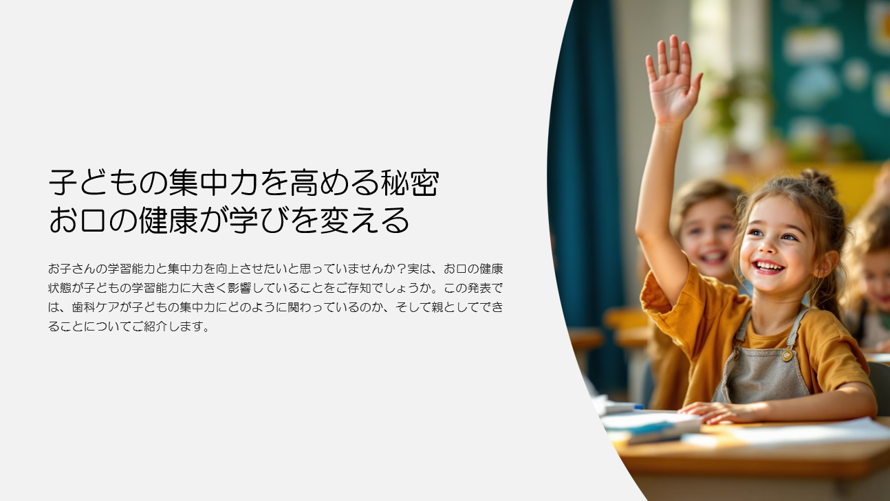「歯科」と「集中力」――一見関係なさそうですが、実は、お口の健康は子どもの学びや成長と深く関係しているのです。