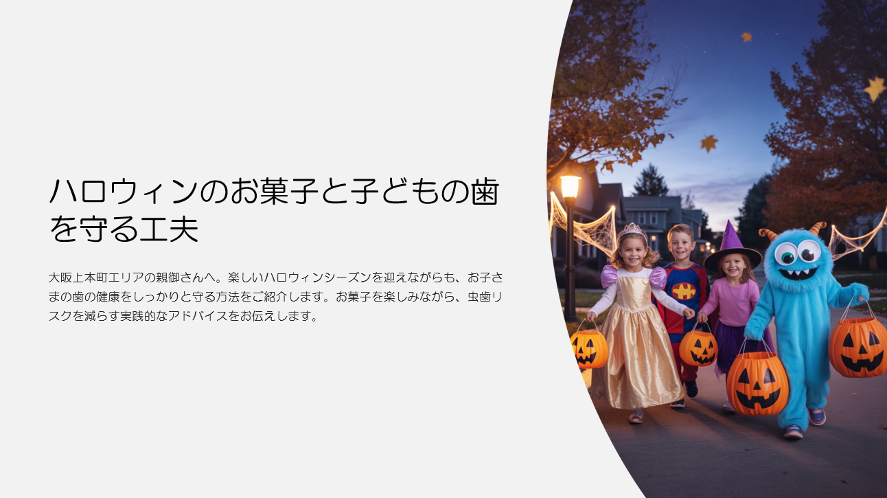 今回は、ハロウィンを楽しみながらも、子どもの歯を守る工夫 をわかりやすくお伝えします。