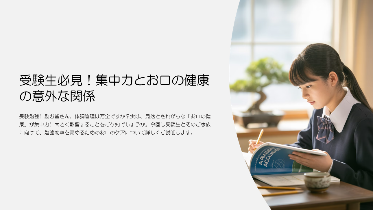 今回は、受験生とお口の健康の意外な関係を解説します。