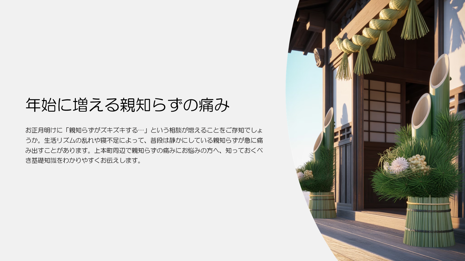 お正月明けに「親知らずがズキズキする…」という相談が増えます。